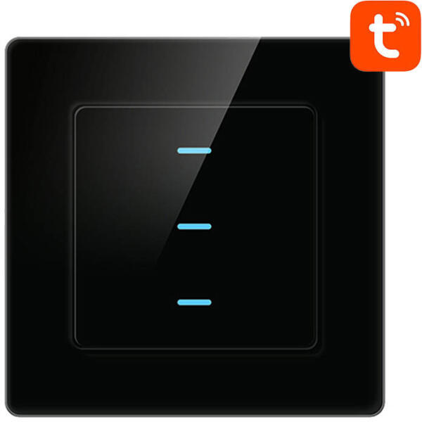 Avatto 3475323 N-ts10-b3 Wifi érintős Villanykapcsoló, Hármas, Tuya, Fekete