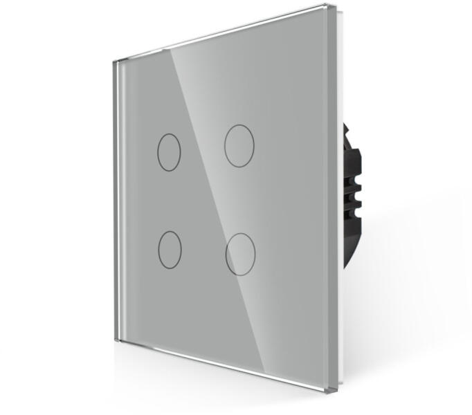 Bingoelec 4 körös érintőkapcsoló, WiFi, üveg előlap, nulla szükséges (W1-401B-GY)