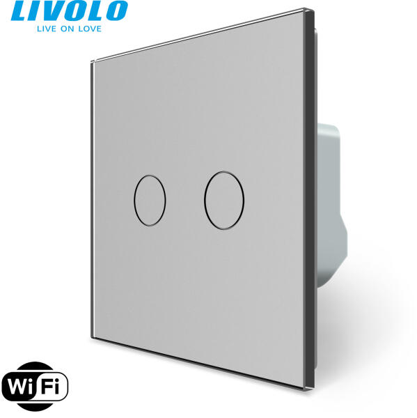 C708WFS LIVOLO 106+6 dupla alternatív WiFi okos váltó érintőkapcsoló, Fázis-Nulla bekötés, 240V 5A, ezüst kristályüveg (C708WFS)