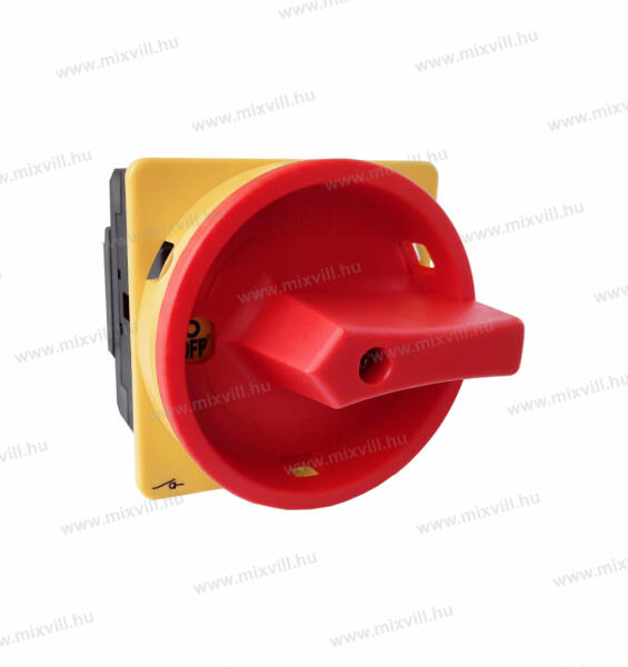 OMU system MX-463Y 4 pólusú 63A beépíthető ipari tűzvédelmi főkapcsoló 4x63A forgócsapos lakatolható Kikapcsolt állapotban 3 lakattal lakatolható.