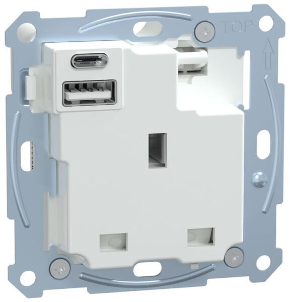 MERTEN Brit 2P+F aljzat, biztonsági zsaluval, A+C USB töltővel, kapcsolóval, csavaros, 13A / 3A MTN2125-0000 Schneider
