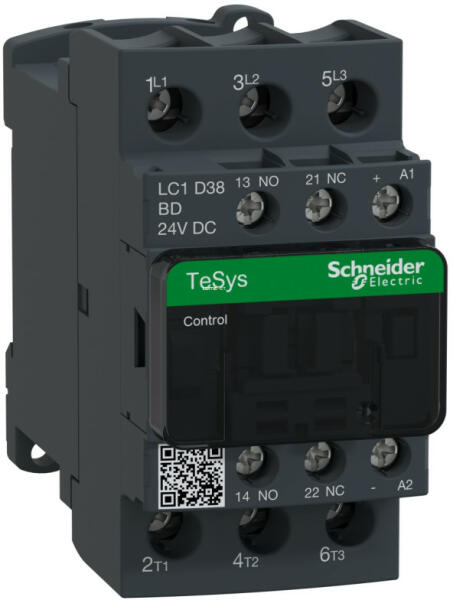 Schneider Electric TeSys D - LC1D38BD - DC mágneskapcsoló, 18, 5kW/38A (400V, AC3) , csavaros csatlakozás, 1Z+1NY (LC1D38BD)