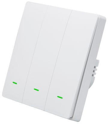 A SmartWise B6-UNI Wi-Fi-s okos villanykapcsoló termékcsalád a Sonoff és más eWeLink app-os eszközökkel kompatibilis, WiFi + eWeLink-Remote (Bluetooth) chip-el felszerelt okoskapcsolókat kínál, fizikai nyomógombos kivitelben. Univerzális termékverzió: fázis és nullavezetékkel, VAGY csak fázisvezetékkel is beköthető. Ez a 3 áramkörös verzió, fehér színű, fizikai nyomógombos előlappal.