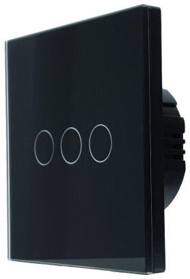 SmartWise T63 UNI Zigbee 3.0 + RF, 3 áramkörös, érintőkapcsoló, fekete üveg előlappal