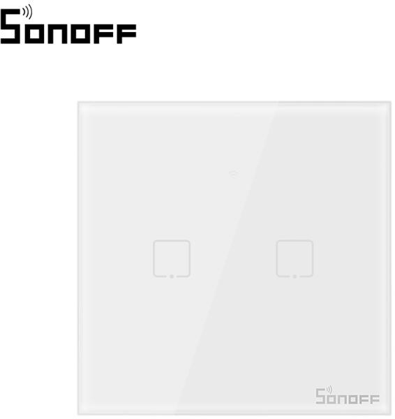 SONOFF Dupla Érintőkapcsoló T1EU2C, Wi-Fi + RF, Mobiltelefon-vezérlés, - okoshazak