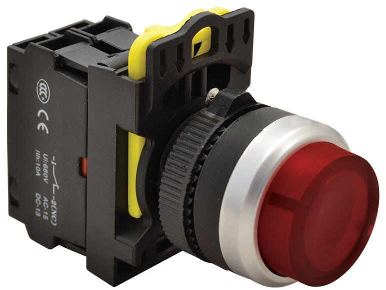 Világító nyomókapcsoló, kiálló, piros 1×NO, 5A, IP42 LED NYK3-HLR Tracon