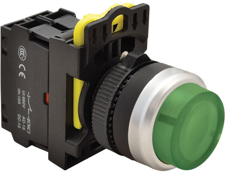 Világító nyomókapcsoló, kiálló, zöld 1×NO, 5A, IP42 LED NYK3-HLG Tracon
