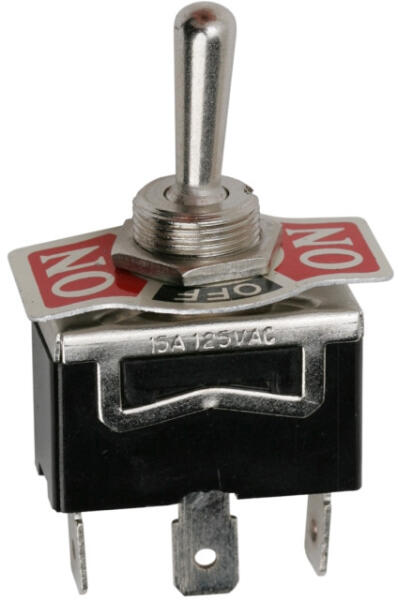 Visszaálló karos kapcsoló, fém kivitel, kiválóan alkalmas műszaki gépek, berendezésekbe történő beépítésre. Maximum 10 A-ig terhelhető, fém előlappal rendelkezik. Strapabíró kivitel.
